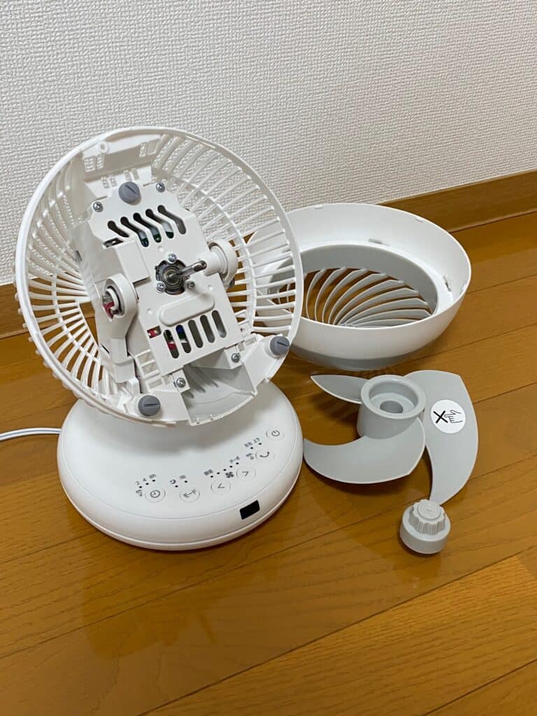 サーキュレーターはホコリが溜まりやすいですが、このモデルは前面カバーを簡単に取り外せます。 ドライバーを使わずにパカっと外せるので、日常的なお手入れもラクラクです。